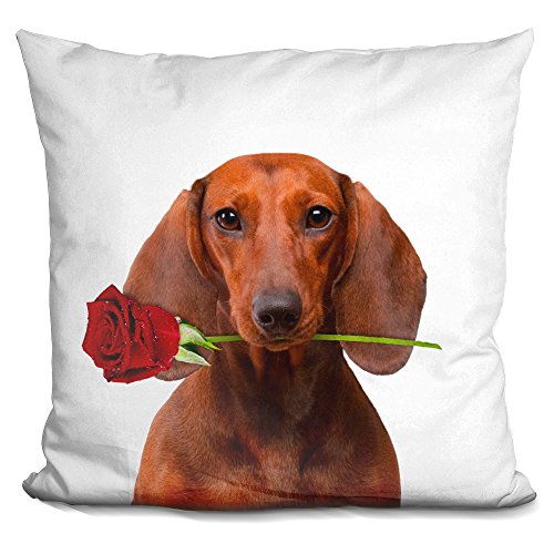 LiLiPi Dachshund Brown Rose Square Decorative Accent Throw Pillow