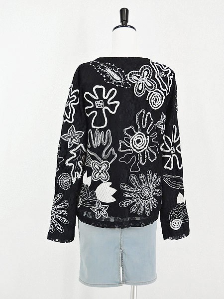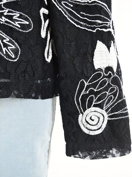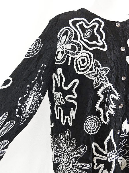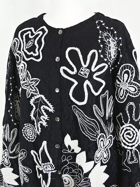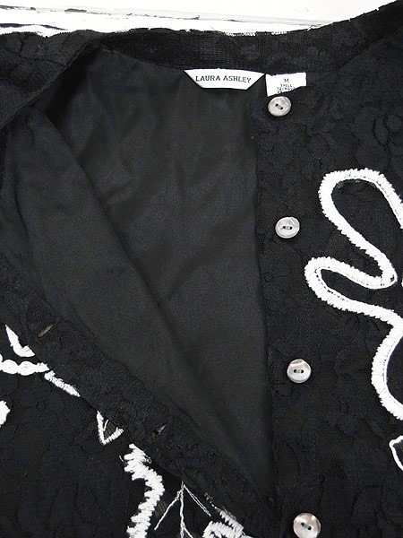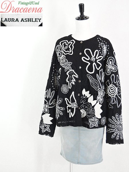 Ladies ブランドLaura Ashley ローラアシュレイ カラー黒・白 メール便不可 コンディション★★★ 素材レーヨン・ナイロン・裏地ポリエステル 表記サイズS-M スタッフコメント左袖刺しゅう部分にシミあり。裏地あり。 実寸サイズ 着丈 62 cm 身幅 55 cm 肩幅 41 cm 袖丈 61 cm ※ウエスト・ヒップ以外は平置き採寸