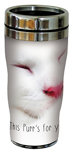 Tree-Free Greetings strives to use the most eco friendly materials and processes possible. Printed and assembled in the USA, the Tree-Free Greetings 16-Ounce Sip 'N Go Stainless Lined Travel Mug is vibrantly printed with hard to find Angi Sullins and Silas Toball art and is great for everyday use. It is reusable, therefore eliminating any disposable paper or Styrofoam cup waste. BPA free and Proposition 65 compliant, this beautiful and durable tumbler is stainless steel lined, resists condensation and holds 16 ounces of your favorite hot or cold beverage. To preserve the quality of your tumbler, hand washing is required. The 16-Ounce Sip 'N Go Stainless Lined Travel Mug makes the perfect gift or souvenir. Save trees and spread joy. Buy a Tree-Free earth-friendly gift today.Feature