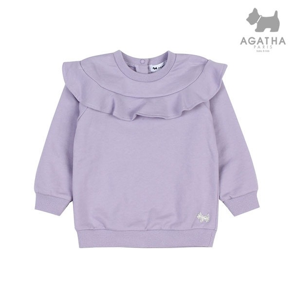 따뜻한 기모져지 소재의 여아 맨투맨 티셔츠로 플레어단을 사용하여 러블리한 느낌을 주는 스타일입니다.