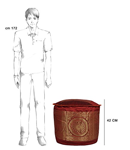 Studio : Lal Haveli Publisher : Lal Haveli Binding : Kitchen Product Description Attractive and durable silk ottoman cover. Indian traditional silk ottoman cover made by the artisans of Barmer who are known for their beautiful jacquard work art. These indoor ottoman cover are perfect for royal interior decor. These. ottoman cover have height of 33 inches and diameter of 43 inches which made it perfect to use as a beanbag to sit on. Filling is NOT included. This is only a COVER with a zipper opening at the bottom. Fabric or polystyrene pellets can be used to fill the cover into shape. 0