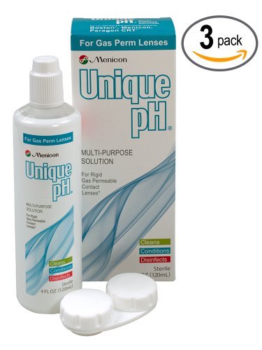 Menicon Unique pH Multi-Purpose Solution + RGP Lens Case. THREE 4 fl oz (120ml) bottles