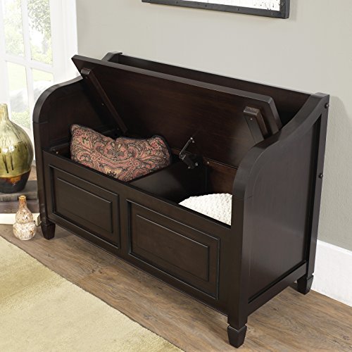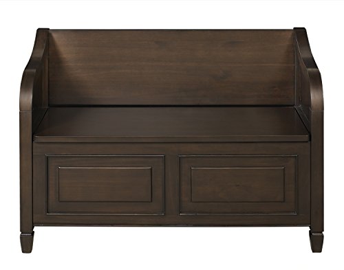 - Feature : Handcrafted with care using the finest quality solid pine / Hand-finished w/a Dark Chestnut Brown glazed stain & a protective NC lacquer to highlight the grain & accentuate the uniqueness of each piece / Large, spacious entryway bench seats 2 comfortably; Bench opens using safety hinges to 2 large storage compartments / Style is reminiscent of British Colonial style w/curved arm rests, notched legs & classically raised panel front / All efforts have been made to reproduce accurate colors, however variations in color may occur due to different monitor types and photography