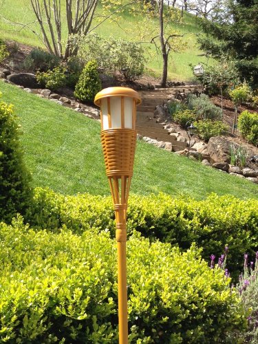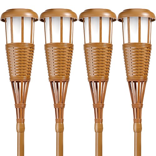 Newhouse Lighting Solar Flickering LED Tiki Torches, Bamboo Finish, 4-Pack