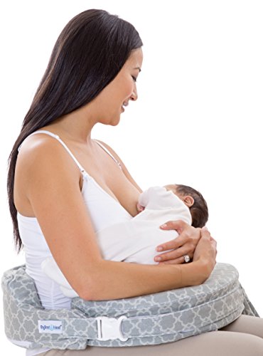 Wrap around design secures to the body helping mom and baby maintain positioning and latch-on; Double-featured strap with velcro and silent-release buckle for easy, one-hand use