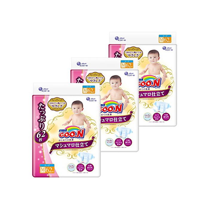 원본상품명: グ?ン テ?プ マシュマロ仕立て M (6~11kg) 186枚(62枚×3) はじめての肌着 【ケ?ス販?】