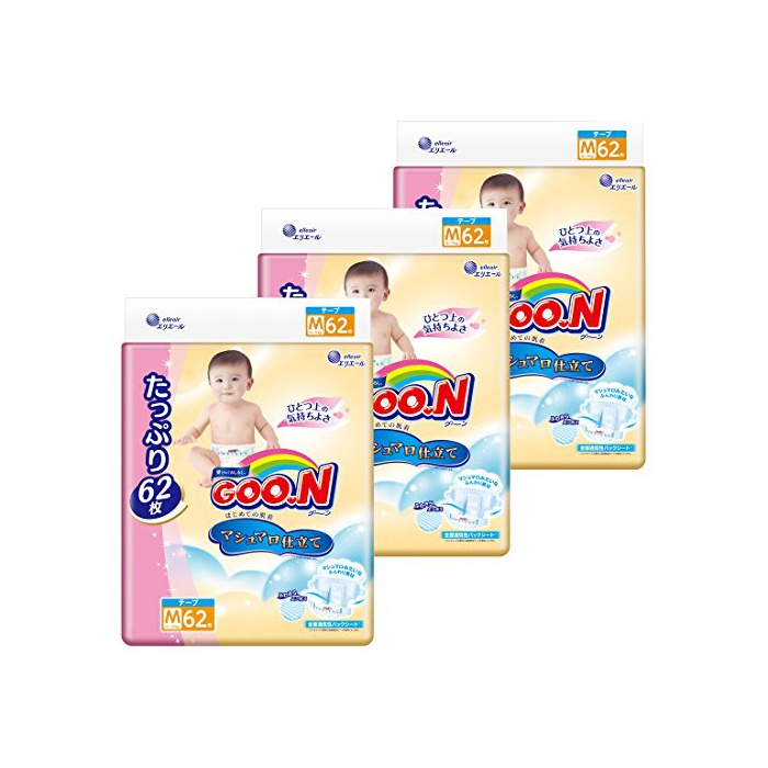 【케이스 판매】군(GOO.N) 테이프 처음인 내의 마시마로 재단 M사이즈 (6~11kg) 186매(62매입×3팩)