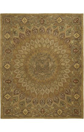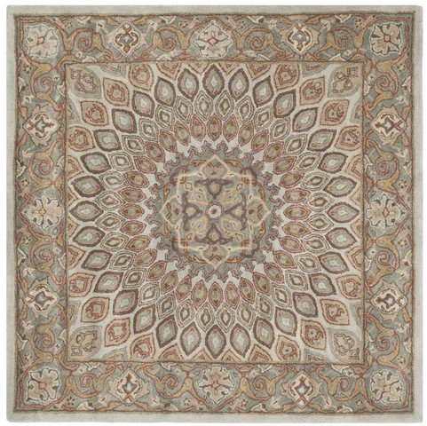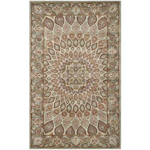 Rich, luscious details comprise this Safavieh rug. It features a stunning central medallion, and a plethora of muted colors consisting of, but not limited to, teal, brown, gold, beige, and grey. Like a sunflower blooming, a beautiful leaf-like design expands from the central medallion to create a feeling of life and vitality in any room the rug is placed in.