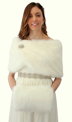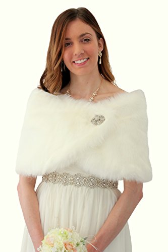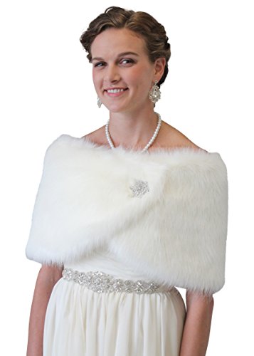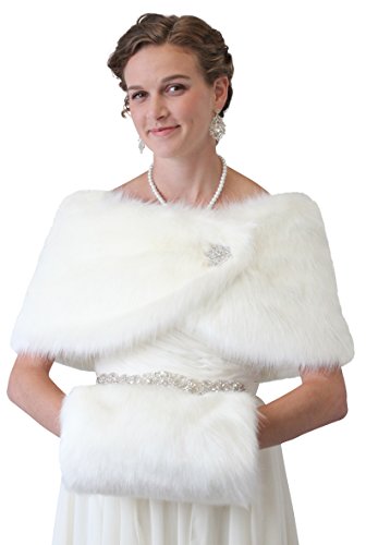 Binding : Apparel Product Description Ivory Faux Fur Wrap is ideal for brides, bridesmaids, weddings, bridal and formal events in colder weather. Satin lined faux fur wrap stole shawl. Measurement: 49 in X 11.5 in with a pair of small hook and eye for closing sewn on each satin tip. 0