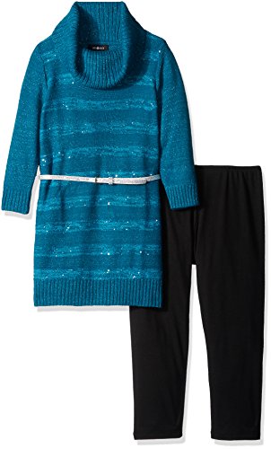 Amy Byer Big Girls' 3/4 Sleeve Sequin Stripe Cowl Tunic with Legging, Peacock, Medium
