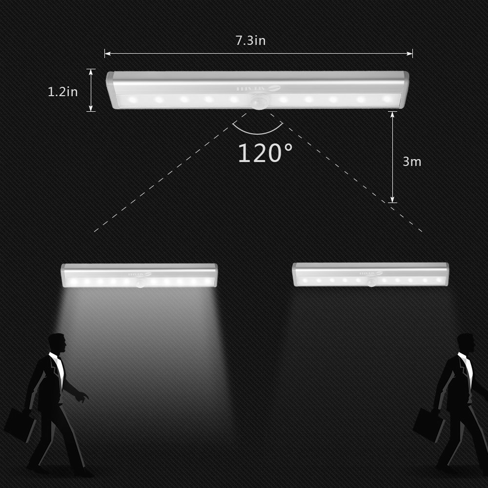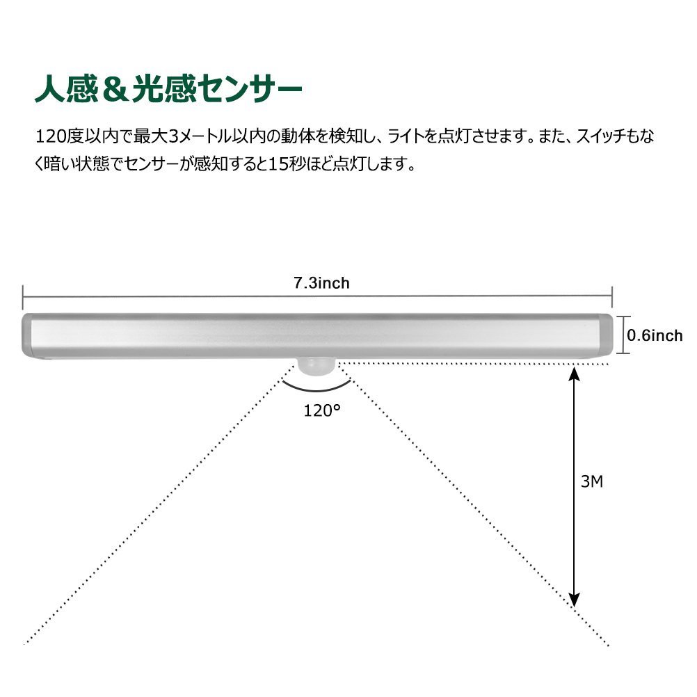 Because it is a built-in human sensor & light sensor, it detects a moving body within a maximum of 3 meters within 120 degrees in dark condition, the LED light turns on automatically, and when the person is gone, it turns off automatically.