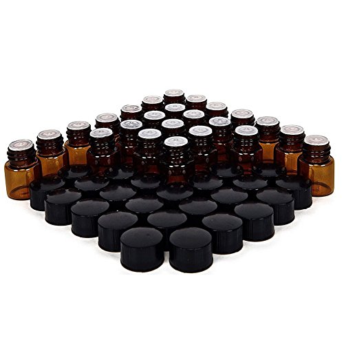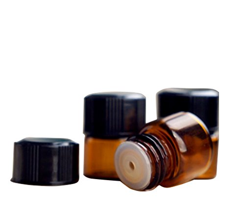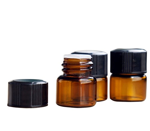 Furnido 1ml/2ml/3ml tiny Amber Glass Essential Oil Bottle with Orifice Reducer black cap lid Sample Vial Small Perfume Refillable Empty Bottle aromatherapy...