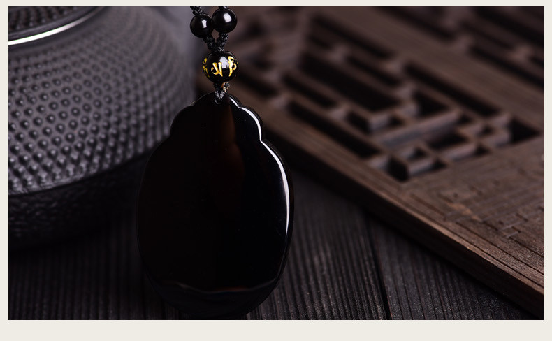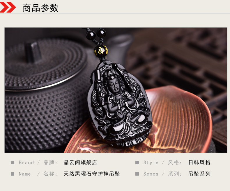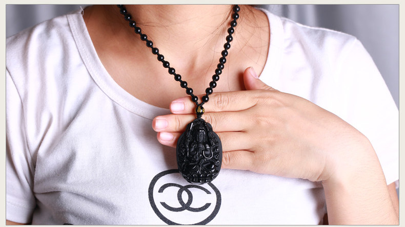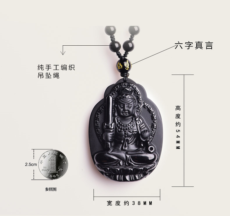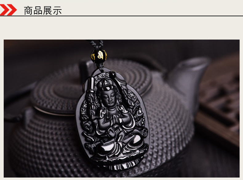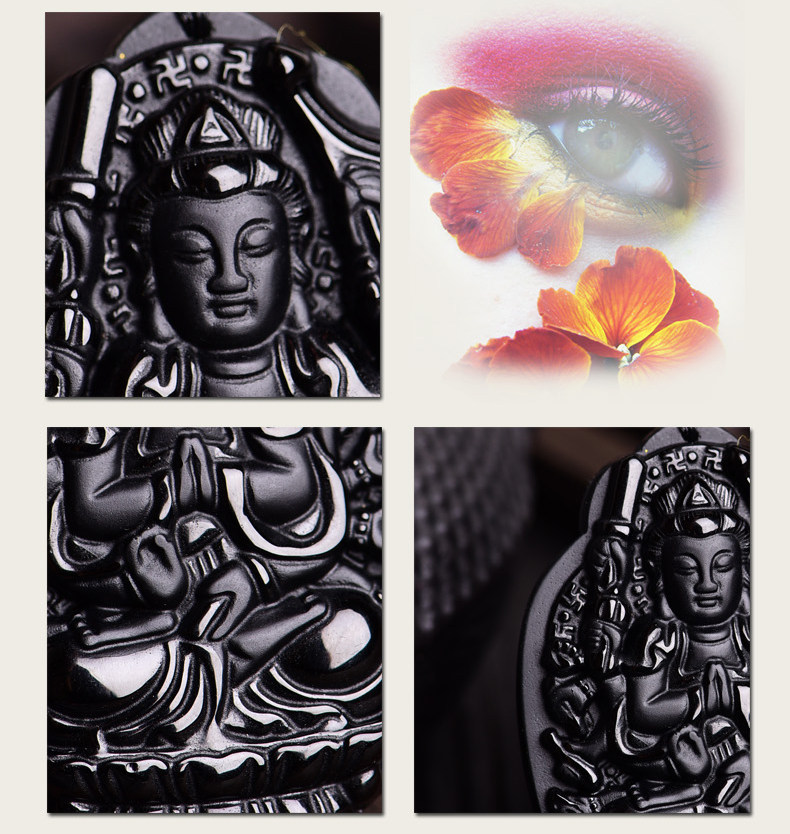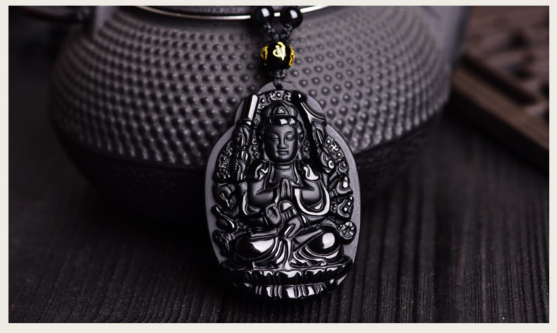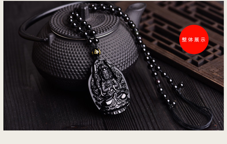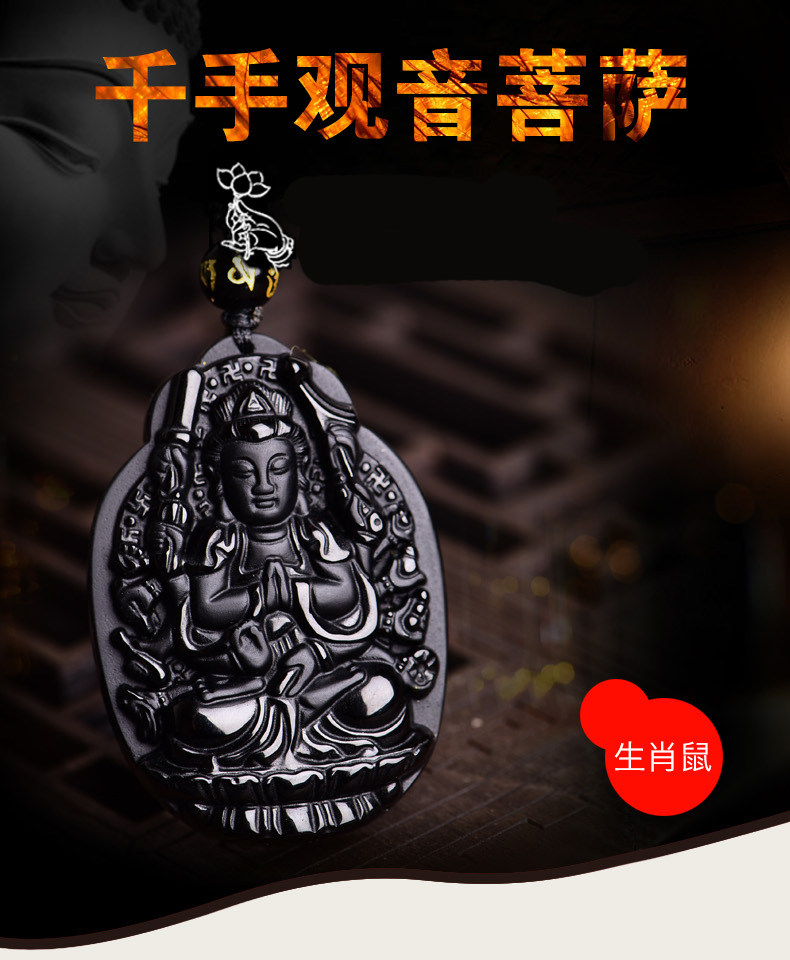 开光黑曜石千手观音菩萨吊坠属鼠守护神本命佛天然水晶饰品男女款