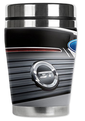 Mugzie Ford Mustang GT Trunk Logo Mini Travel Mug with Insulated Wetsuit Cover, 12 oz, Black