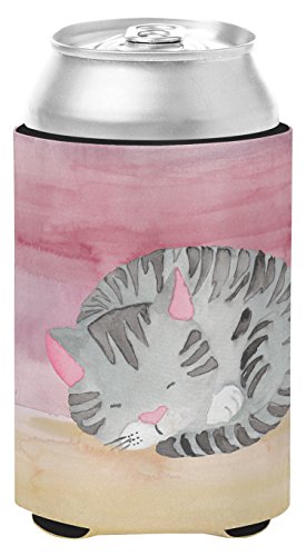 Caroline's Treasures BB7353CC Sleeping Grey Cat Watercolor Decorative, Can Hugger, Multicolor
