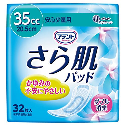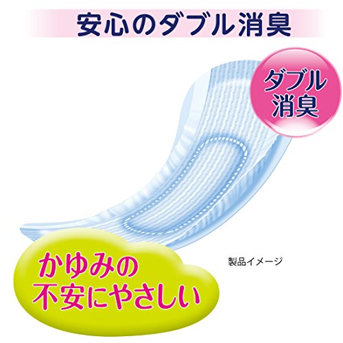 クシャミ等で瞬間的に尿がにじむ方向けの昼用ナプキンサイズの吸水ケア商品です。表面シートが水分をすっと引き込み、さらさら感が持続します。緑茶成分配合で、下着内のアンモニア臭と汗臭をしっかり消臭します。湿気を逃がす通気性バックシート採用。サイドギャザーで横モレ対策。少量用35cc吸収。※生理用ナプキンではありません。※経血の吸収には不向きです。