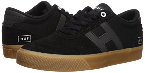 Product DescriptionHUF men's galaxy sneaker. The HUF galaxy sneaker debossed tongue logo rivet detailing in heel and tongue pull eva insole durable interior lining spot clean man-made materials imported by HUF0