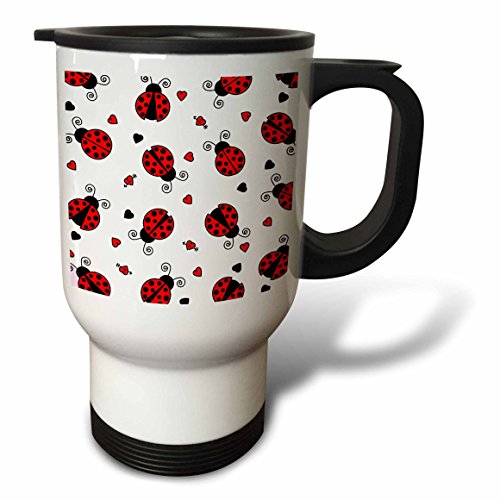 3dRose tm_12100_1 Love Bugs Red Ladybug Print with Hearts Travel Mug, 14-Ounce, Stainless Steel