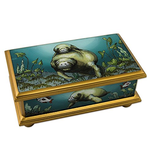 NOVICA "Manatee Family" Reverse Painted Glass Box