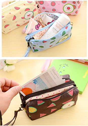 Fashion Creative Zipper Cosmetic Makeup Bag Elegant Double Zipper Multifunctional & Large Capacity Bag Mobile Phone Bag Key Case Wallet. (Blue)