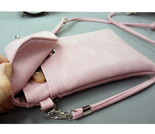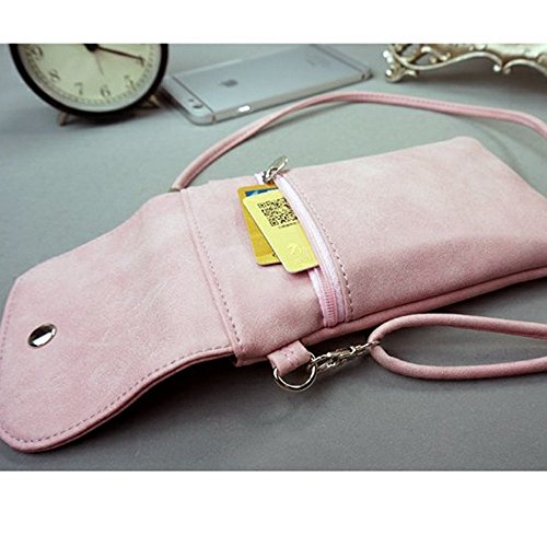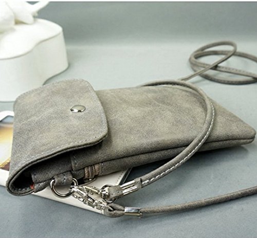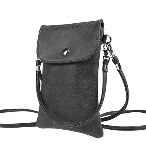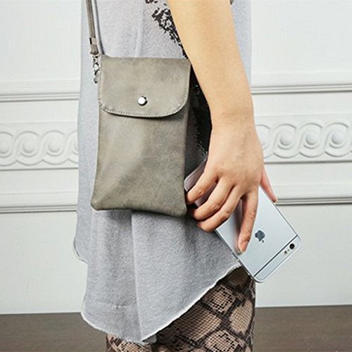 Product Description Product Description --Bag Size: 7.48x 4.72x 0.4inch --Material: Scrub PU Leather, inside is Polyester Cotton --Fashion Snaps closure design. With a adjustable and removable Strap --Inside is divided into 2 pockets for your cellphone under 6inch cash keys. In the back is a zipper pocket for important cards coins. --Fashion small shoulder/ crossbody cellphone pouch, easy to take and use. very convenient. a good choice to your friends, daughter and yourself 0