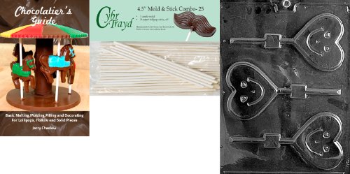 Cybrtrayd 'Happy Heart Lolly' Valentine Chocolate Candy Mold with 25 4.5-Inch Lollipop Sticks and Chocolatier's Guide