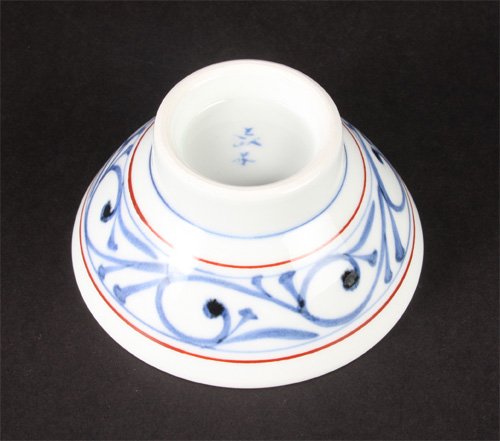 ●백자의 공백을 살린 코발트토의 소메쯔케(염부/청화백자) #과,적녹색의 유약(다른 색으로 그린 그림이나 무늬)를 포인트 적으로 만들어 넣음(담는 그릇·상자 등)다디자인화고 풀꽃의 무늬를 그린 다완