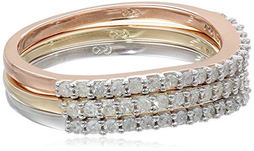 Catch the stacking ring trend with this pairing of mixed-metal bands. Each wavy ring is accented with rounds of white diamonds for an eye-catching finish.Feature