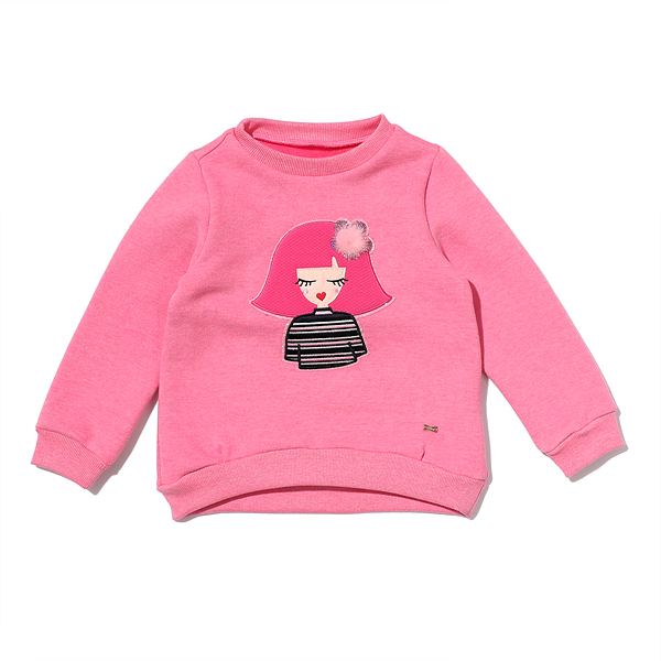 앞부분의 포인트를 주어 큐티한 느낌으로 코디되며 팬츠나 스커트 모두 잘 어울리는 티셔츠입니다.