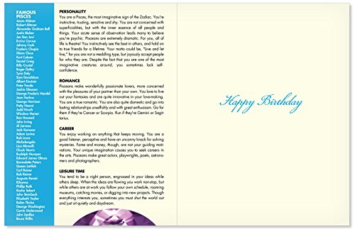 J9441 Pisces Astrological Sign Birthday Card - Famous People, Moto, Personality, Stone, Symbol, Planet, Color, Flowers and Dates (Extra Large 8.5'' x 11'' w/ Envelope)