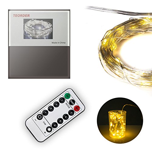 Teorder Battery Operated LED Lights Fairy String Light Waterproof 33ft with Remote Controller for Bedroom /Wedding /Party /Garden(No battery included)