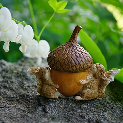 Top Collection Miniature Garden Squirrels Carrying Acorn Trinket Box with Secret Compartment Decor, Small
