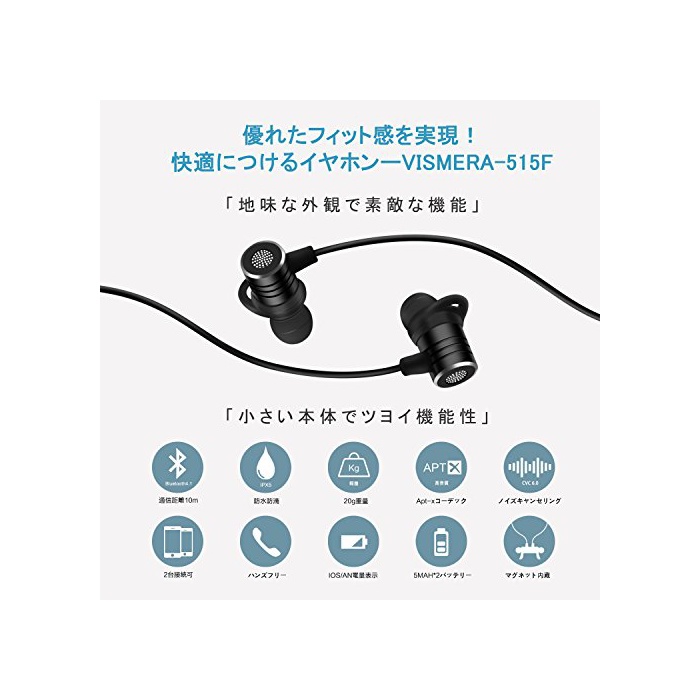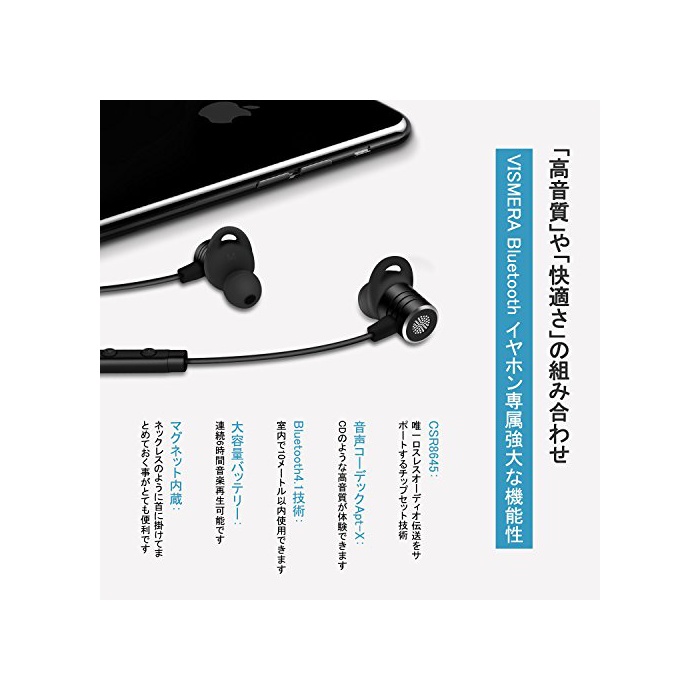 bluetooth 이어폰,wireless 이어폰 Vismera bluetooth 4.1 블루 tooth 이어폰 스포츠 apt-x대응 마이크 부착 노이즈갼세린구 이어폰 고음질