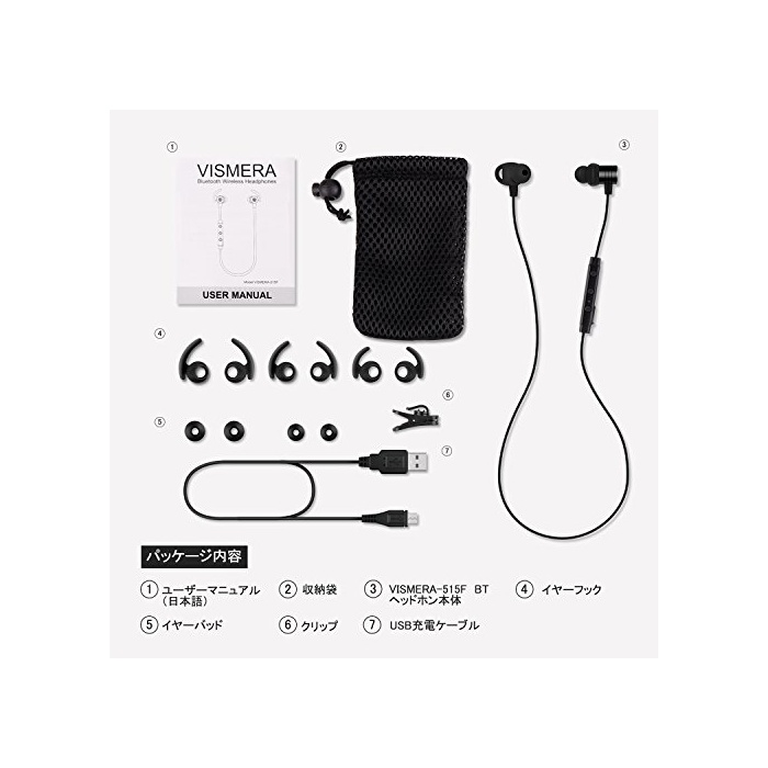 보증&서포트:구입 후1년 기간은 보증기간이 되어 있습니다.불명한소가 있으면 부담없이 연락 하십시오.팩키지 내용: 1 x bluetooth이어폰 본체,1 x USB충전 케이블,6 x이어 패드,6x이어 훅,1 xcarrying 파우치,1 x클릭,1 x유저 메뉴얼(일본어).대응 기종:블루 tooth 기능 탑재 각종 디바이스로 대응 할 수 있는.Apple iPhone8/iPhone7/iPhone7 Plus/iPhone SE/iPhone6s/iPhone6s Plus/iPhone6/iPhone5/ iPod등iPhone각 기종,iPad Pro/iPad Air/iPad mini등iPad각 기종,sony,xperia,Google,Nexus,Samsung Galaxy,Asus,Fujitsu,Huawei,HTC,Kyocera,VAIO,Sharp등Android각 기종,Windows,Mac탑재PC등.
