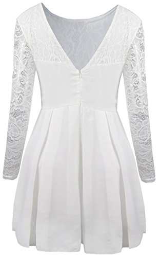 Title : Fancyinn® Women Sexy Zipper Back V-neck Floral Lace Patchwork Cocktail Mini Dress White S