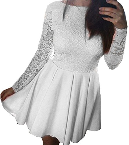 Feature : Material:Lace 20% Cotton 80% Polyester, High Quality Delicate Lace,Lining: Flourecent Lining / 4 sizes available for the following listing (S,M,L,XL),please kindly check the size chart in product description area. 2 colors available: White and Pink / Floral lace patchwork, sexy zipper backless, slim fit style / Occasion: evening, cocktail party and daily casual / package included: 1 x women dress