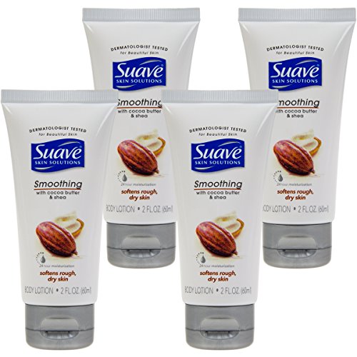 -. Feature : Choose from Smoothing & Advanced Therapy Formulas; Light, neutral scents perfect for men & women / Smoothing Cocoa & Shea butters; improves skin texture; Advanced - rich hydrators to heal very dry skin. Dermatologist tested and proven daily moisturizer / Pack of 4 tubes - one for purse, car, home, and office; Travel sized toiletries for trial, purses, carry-on bags; Great gift set for anyone! / Made in USA; Each tube: 2 fl oz, 4.75"H x 1.5"W / (4) Suave 2oz. Body Lotion Tubes, Choose Style From Dropdown Menu, New