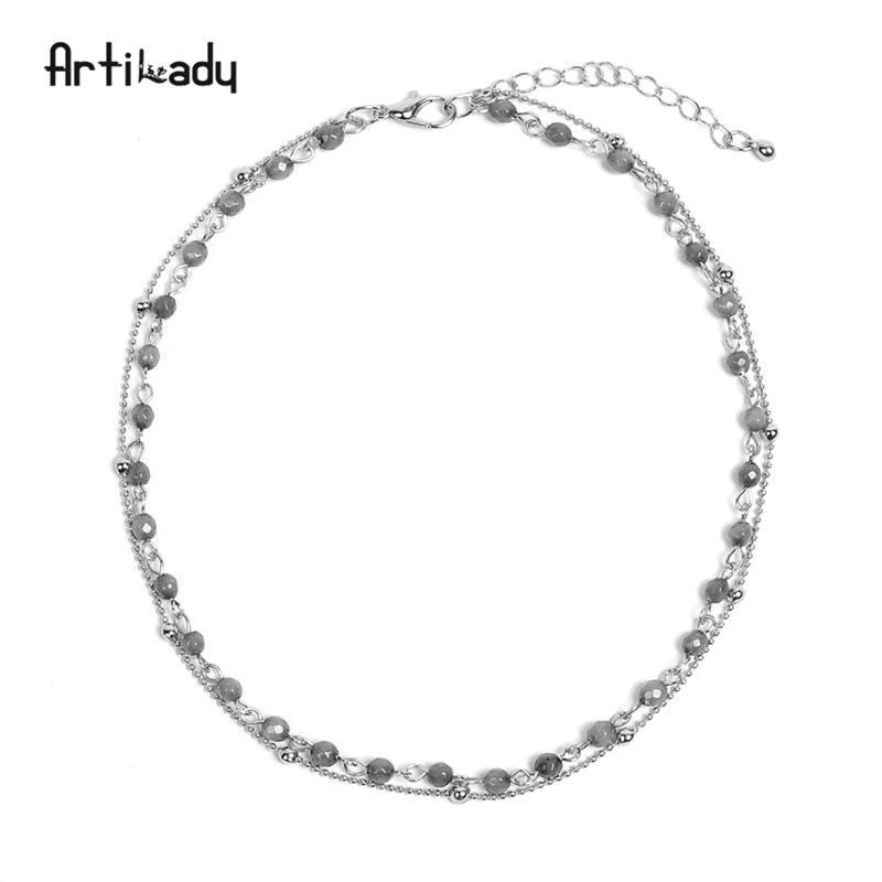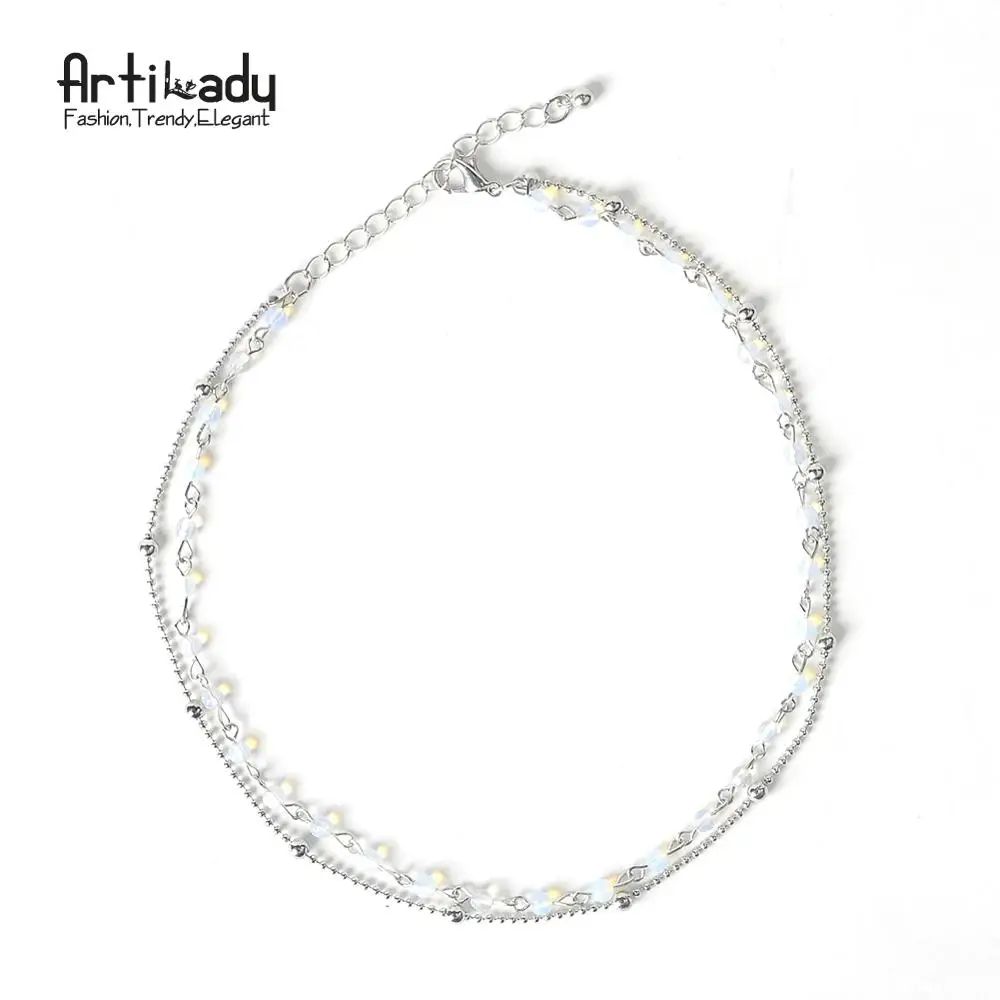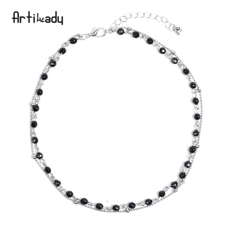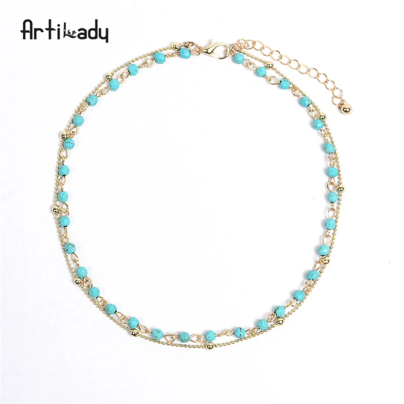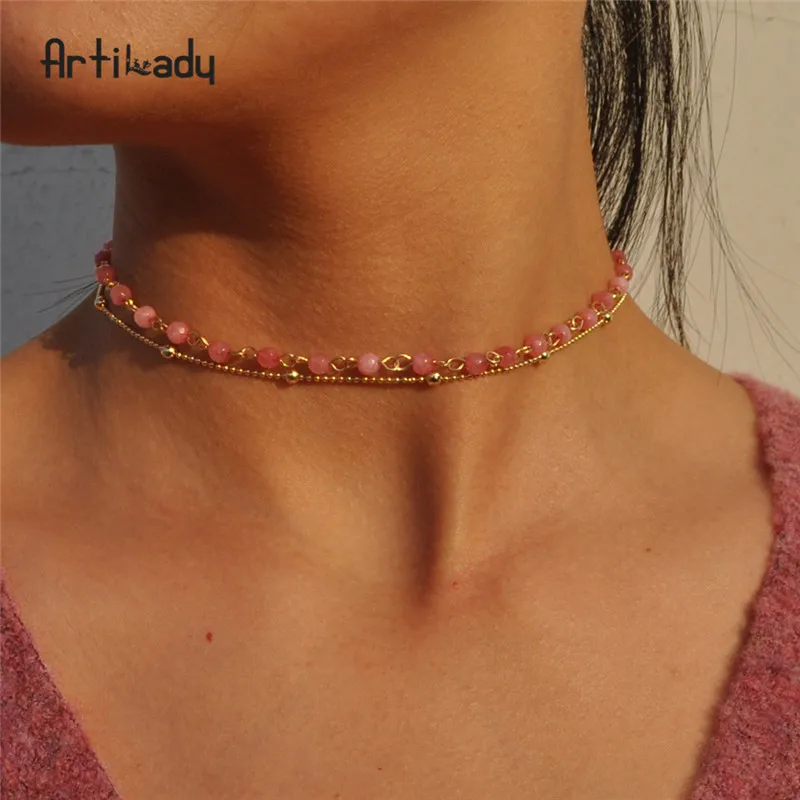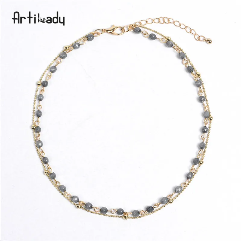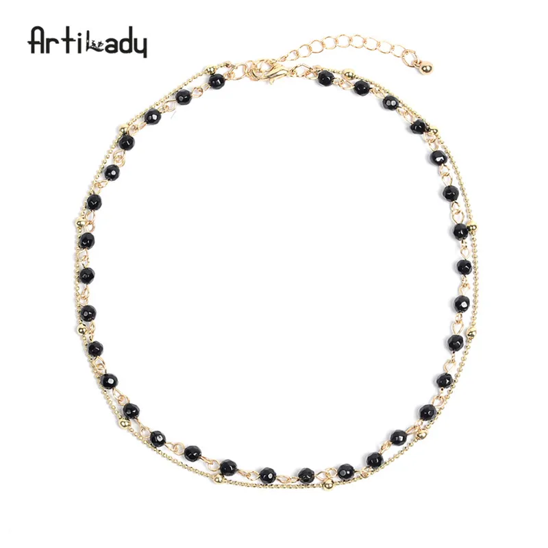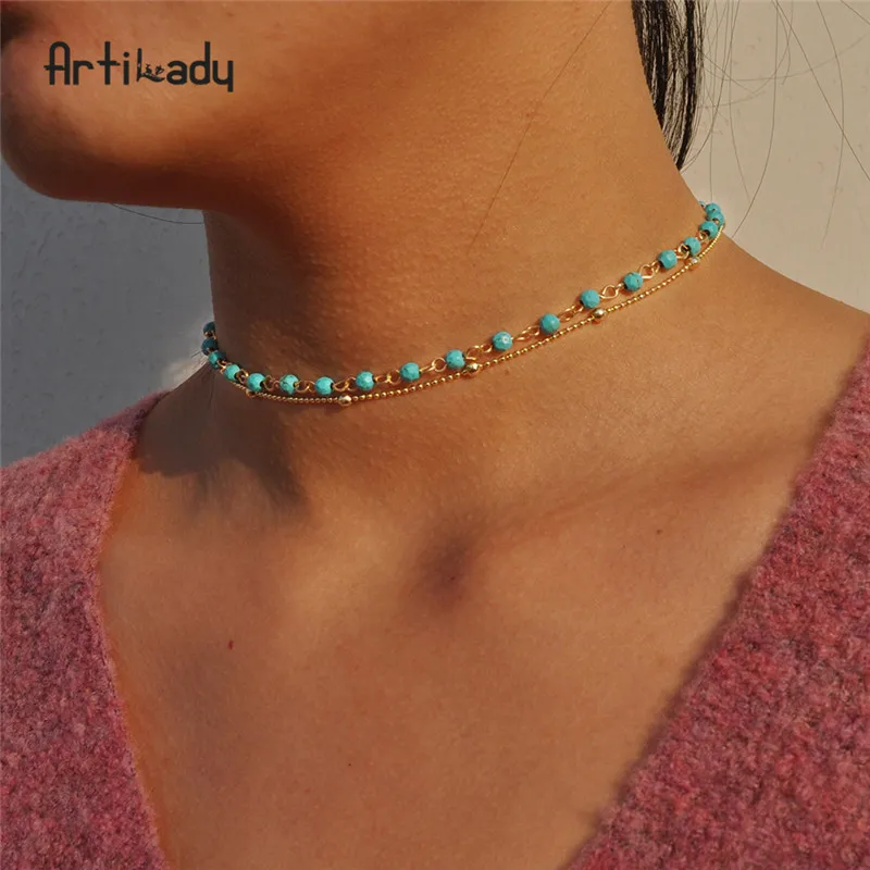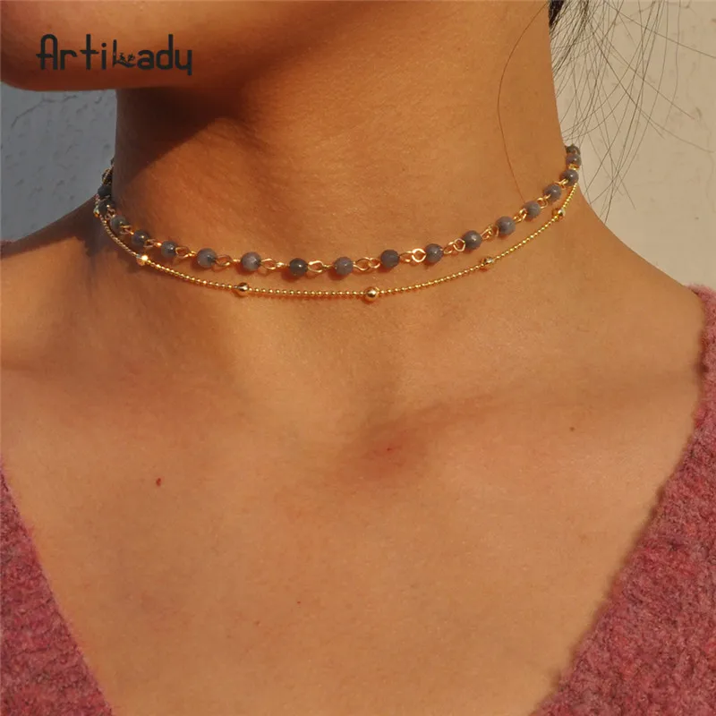 layer necklace:bead choker necklace