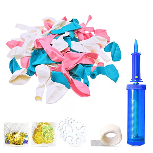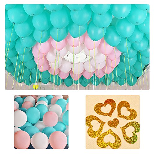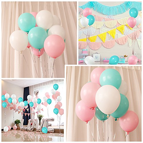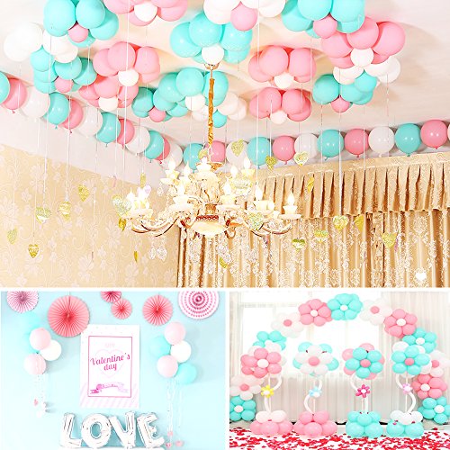 Geekper Party Balloons 10inch Tiffany Blue, Pink, White Hand Held Air Inflator 2.2g Thicker Latex Pearl Balloon with Pump for Festivals Wedding Birthday Party Decorations - 100Pack