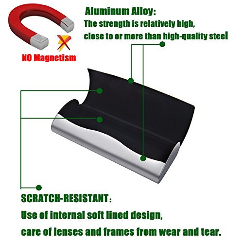 Parameter: Weight:2.1oz/ 60g Main body: aluminum alloy Interior: soft lined material Color: black/silver/gun gray Size: 6.1inch(L)x2.4inch(W)x1.3inch(H)/15.5CM(L)x6.1CM(W)x3.3CM(H) Applicable glasses: Ordinary myopia、optical or reading eyeglasses (middle or small frame),rough or some big frame glasses will also apply for it; does not apply for all sunglasses、swimming goggles、basketball goggles or other sport goggles.