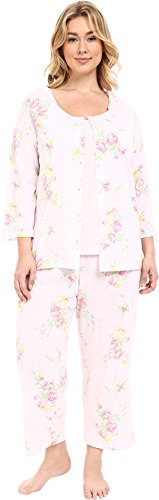Carole Hochman Women's Plus Size 3 Piece Capri Pajama Set, Rose Meadow, 1X