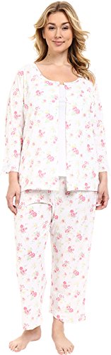 Carole Hochman Women's Plus Size 3 Piece Capri Pajama Set, Rose Meadow, 3X
