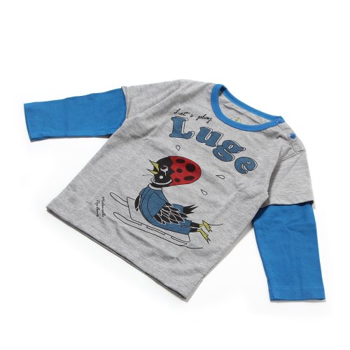 - Title : Mademoiselle Papillon ("Miss Butterfly") - Tee-Shirt - Long Sleeve - Bird Athlete - "Luge" Sled Design,Misty Gray,6-12 Months