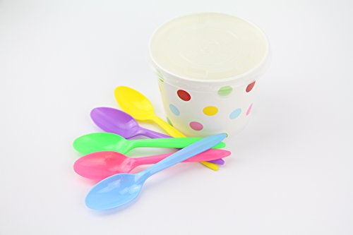 100 Count Deli Containers Durable Food Storage Containers with Lids and Multi-colored Spoons Hot and Cold Disposable 16oz Containers Use for Frozen Desserts, Soups, or Any Food of Your Choice