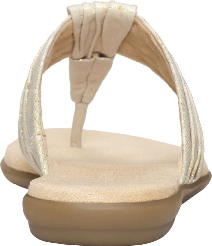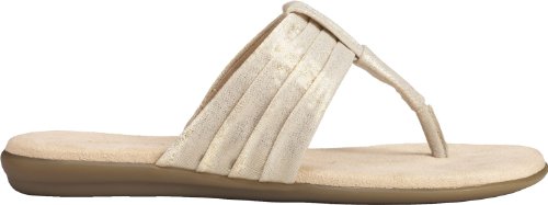 - Feature : Thong sandal with wide, pleated band at vamp featuring textured outsole and suede, double-padded memory foam insole