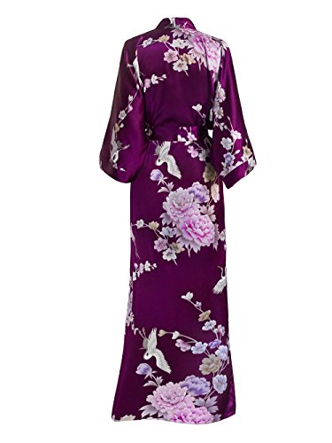 Old Shanghai Women's Kimono Long Robe - Chrysanthemum & Crane (Plum)