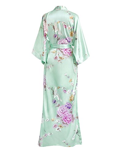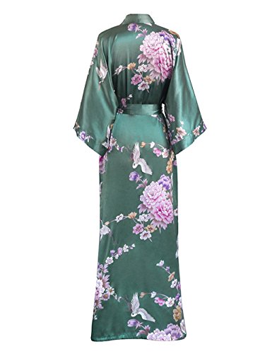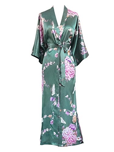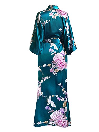 Old Shanghai Women's Kimono Long Robe - Chrysanthemum & Crane (Peacock)