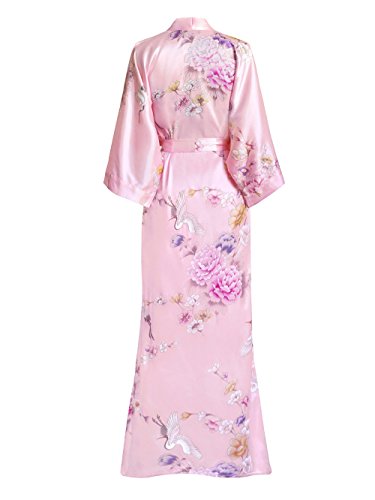Old Shanghai Women's Kimono Long Robe - Chrysanthemum & Crane (Light Pink)
