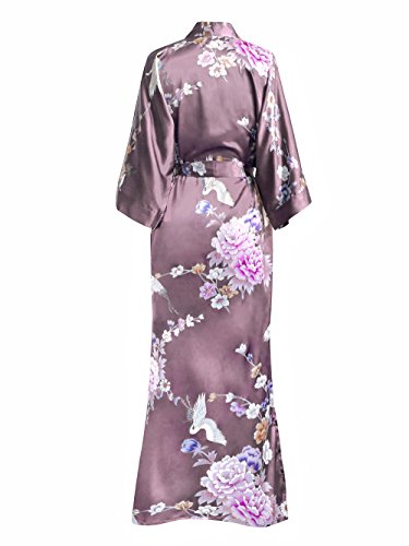 Old Shanghai Women's Kimono Long Robe - Chrysanthemum & Crane - Mauve