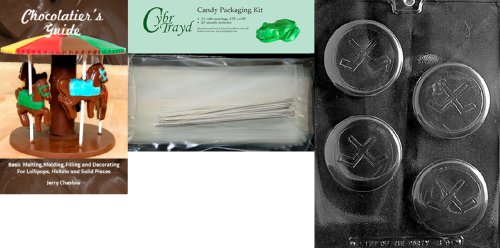 Cybrtrayd Hockey Puck Chocolate Mold with Chocolatier's Bundle, Includes 25 Cello Bags, 25 Silver Twist Ties and Chocolatier's Guide